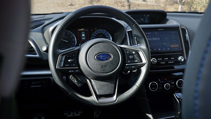 这次试驾的规格为2021款 2.0i 智擎旗舰版EyeSight车型,因此EyeSight配置包含全速域ACC主动车距控制定速巡航(时速0至200公里)、预防碰撞自动刹车、预防碰撞油门控制、车道偏离警示、车道偏摆警示、前车驶离警示等,还搭载自动倒车刹车系统。可以说该有的高科技配置都武装到车身上,给驾驶员足够的信心去完成郊野的穿越活动。