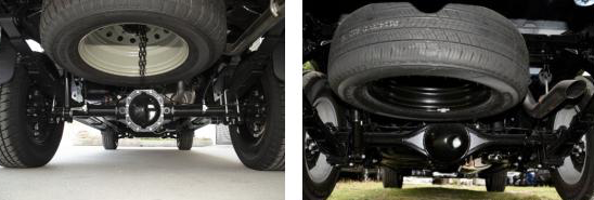 相比之下,金刚炮使用风骏的旧底盘,下面有一个钢板弹簧,其承载能力显然无法与福田征服者采埃孚8AT柴油皮卡相比。