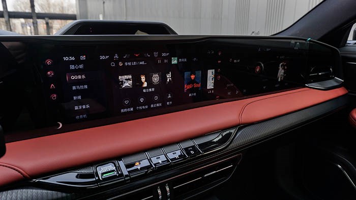 12.3英寸 27英寸超大尺寸贯穿式全景屏,拥有1.1米的惊人长度,支持高清分辨率和多点触控,可以实现完整或独立分屏内容显示,同时主副驾可以根据需求自由切换屏幕显示内容,同时支持双区蓝牙功能,主副驾可以根据各自需求独立安排而不互相打扰。无论是看视频、听音乐亦或是沉浸于自我空间。