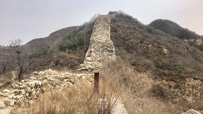 沿着碎石小路往里进发,可以走到一段古长城的脚下。这一段长城在风吹雨打下损毁的不算太严重,依旧看得出当年的雄伟,走在城墙上方可比较出人的渺小。