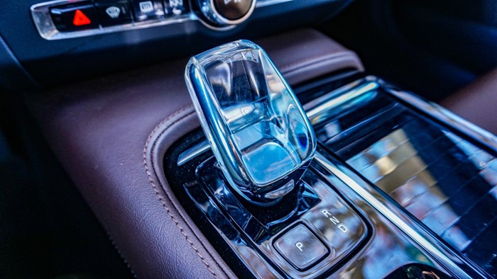 所以,从实际乘坐感上来说,S90是非常优秀的。偌大的一个车,坐进去后,身高180厘米以下的人,感觉都是游刃有余。双色五轮辐造型的轮毂,让车运动感十足,轮胎使用了245/45 R18的规格。