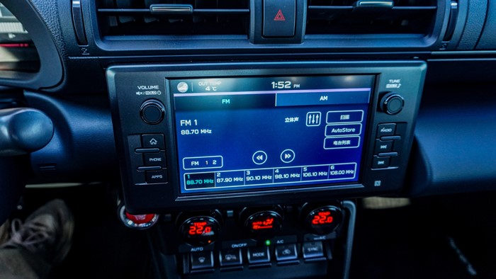 组合仪表盘采用半液晶的款式,同样也出现了STI标识,读取信息清晰明了。方向盘依旧是小巧精致,让人爱不释手。握感和粗细都很适中,红色压线成为点睛之笔。