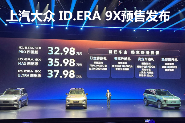 昨晚,上汽大众旗下首款增程家用SUV车型ID. ERA 9X开启预售,共三款车型,售价区间32.98-37.98万元,该车将于4月25日上市,届时会正式公布最终售价。