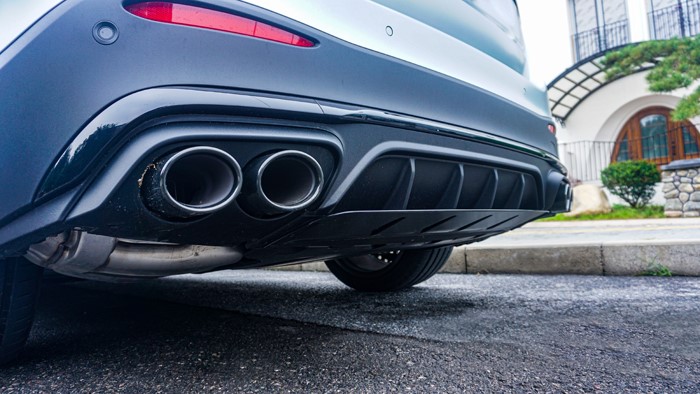 车型后部设计简洁而精致,同样是全面黑化处理。熏黑LED尾灯的设计使整个车尾更加立体感十足。后备箱非常平整,支持4/2/4分别放倒。后杠下方的空气套件让车看上去非常战斗,另外车辆使用了双边双出排气。