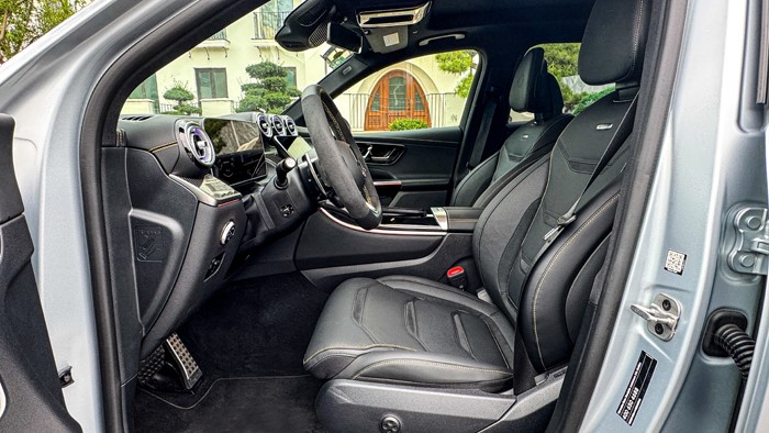座椅采用了黑色高级真皮材质加上黄色砸线点缀,AMG运动座椅提供了出色的舒适性和支撑力。座椅的设计符合人体工学,乘坐起来非常舒适。车内Burmester柏林之声音响配备了15喇叭。