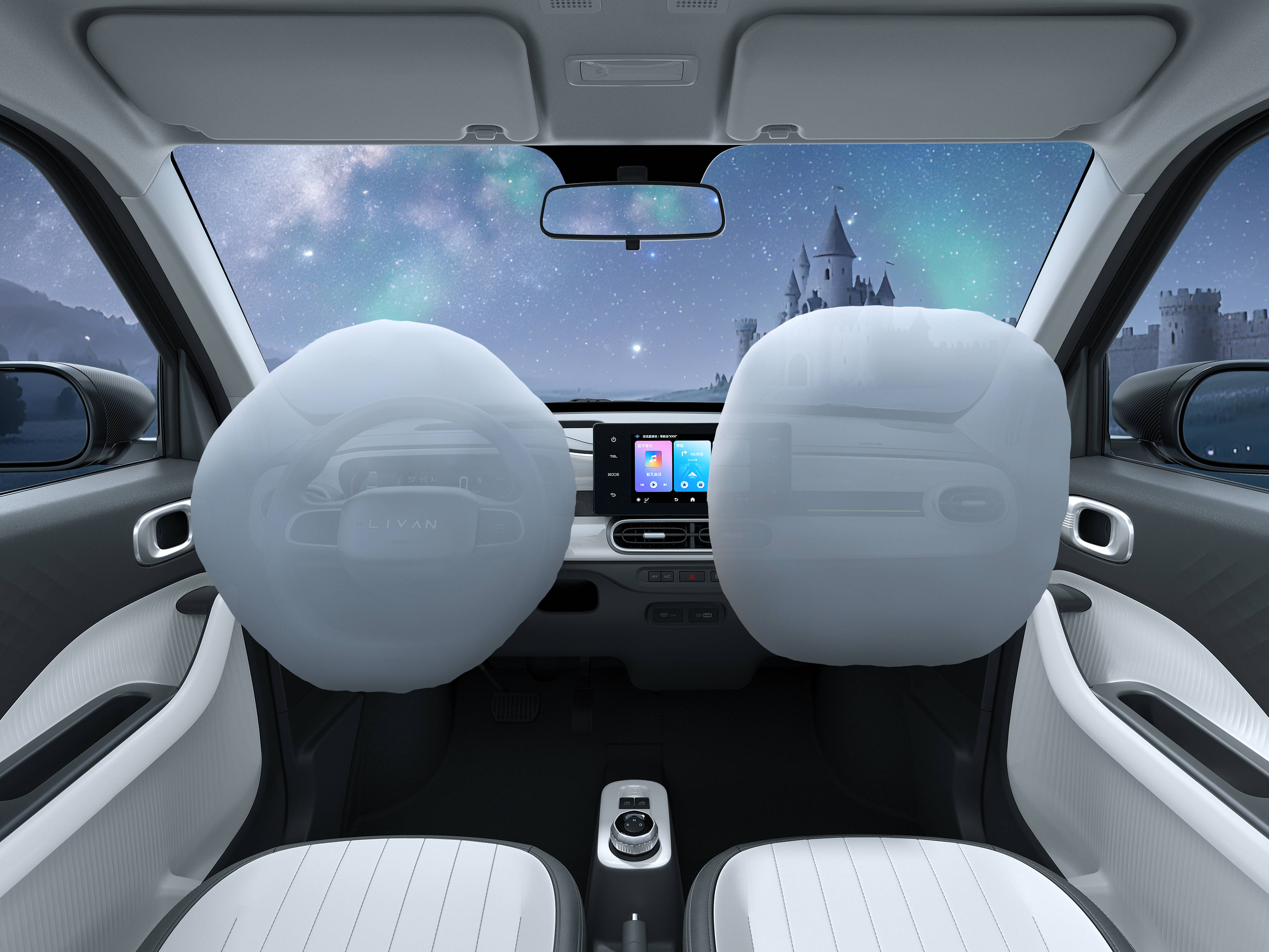 安全,没有级别之分,理应是所有出行工具的底线。安全性,是许多消费者对微型电车的核心疑虑。在普遍仅配备主驾气囊甚至无气囊的市场中,睿蓝蓝气球全系标配主副驾双安全气囊,使用超高强度钢并搭载激光焊接车顶,车身强度提升30%,更牢固。同时,其三电技术承自吉利体系,电池系统具备IP68级防护并经过50多项安全测试。