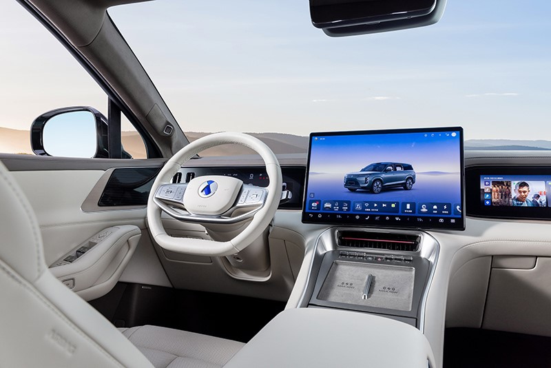 内饰方面,新车内饰和N9高度相似,配备了17.3英寸大尺寸中控屏搭配13.2英寸液晶仪表及13.2英寸副驾娱乐屏,提供平底方向盘。中央岛台保留一排水晶实体按键及无线手机充电面板。新车将提供天神之眼B驾驶辅助。