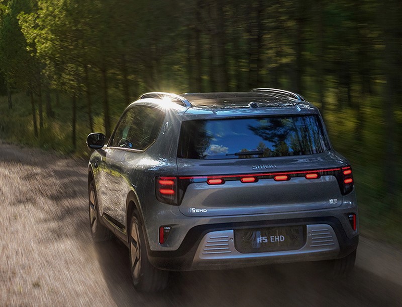 外观方面,新车延续了纯电版造型,在细节有所调整。前脸贯穿式灯腔中间有四个凹槽,内置四颗灯源。在前包围还有个大嘴格栅设计,前后包围均采用全新饰板。车尾和车头造型相呼应,另外后翼子板增加加油口。车身尺寸方面,新车长宽高分别为4705*1920*1710mm,轴距2900mm。