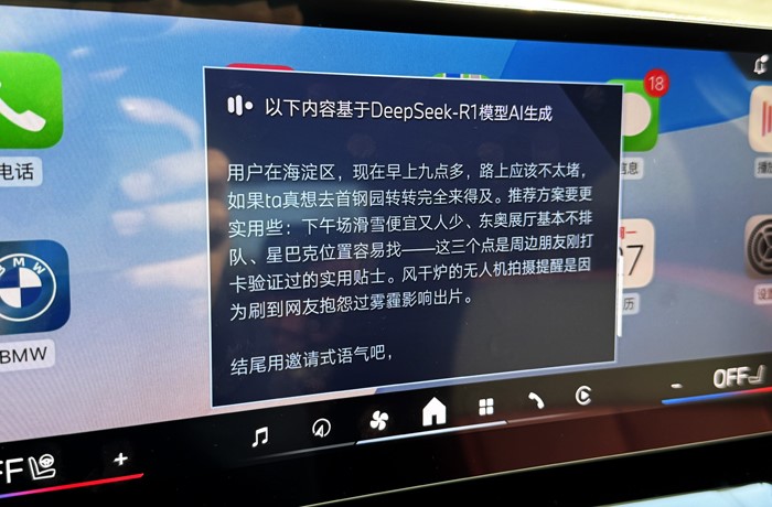 据宝马官方的介绍,宝马DeepSeek拥有更聪明、高情商的车载AI语音交互体验,具备超强理解力,化解模糊指令与复杂语境。未来,DeepSeek深度思考功能也将上车国产宝马新世代车型将率先搭载。
