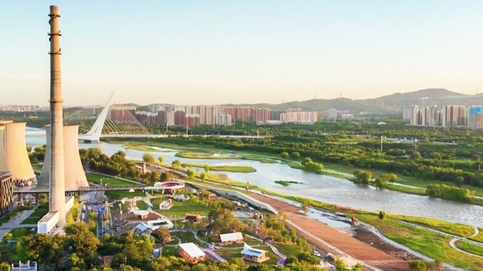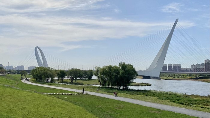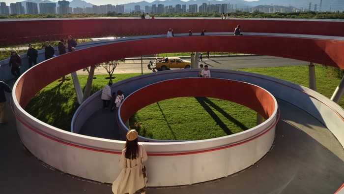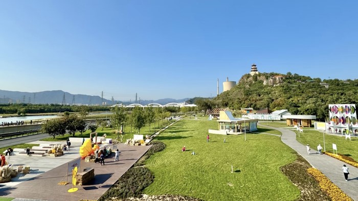 我导航的是首钢香格里拉酒店停车场,这里距离永定河大集非常近。停好车,沿着路标一直向河边步行,晒着温暖的阳光,沿路风景让人心情很放松。