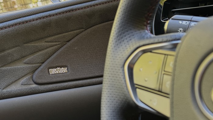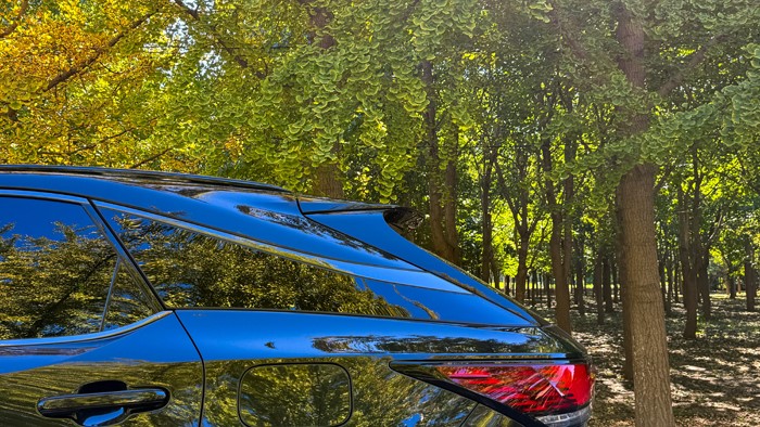 经典的悬浮式C柱在视觉上非常有辨识度,而那条同样黑化的镀铬饰条可谓功不可没,让车身侧面显得非常流畅,也是得益于这个出色的c/d柱设计,车身没有太大的突兀感。
