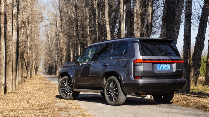 GX550h尾部设计简洁大气,贯穿一体的LED尾灯组设计现代时尚,尾部保险杠增加了防擦板,实用性得到提升,车尾整体呈现出动感十足的氛围。