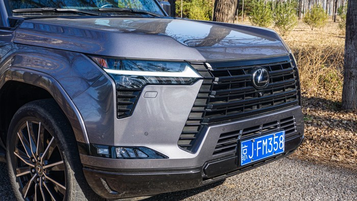 GX550h不规则轮廓的LED矩阵大灯组设计线条很锐利,光芒四射,当然,提供给驾驶者出色的照明效果。巨大的中网LOGO体现出雷克萨斯品牌的强大气场。