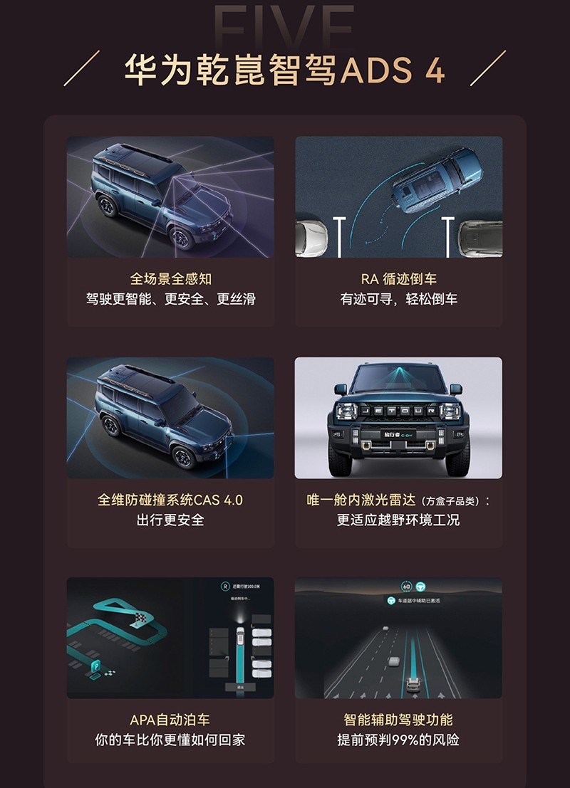 内饰方面,新车采用15.6英寸中控屏搭配10.25英寸液晶仪表,内置TOUR OS 3.0智能座舱,搭载全新AI智能管家。新车将搭载华为乾崑智驾ADS 4,提供RA循迹倒车、城市领航辅助等功能。