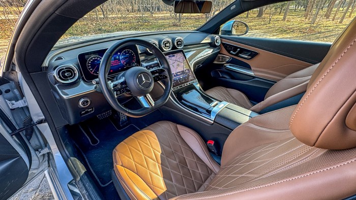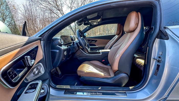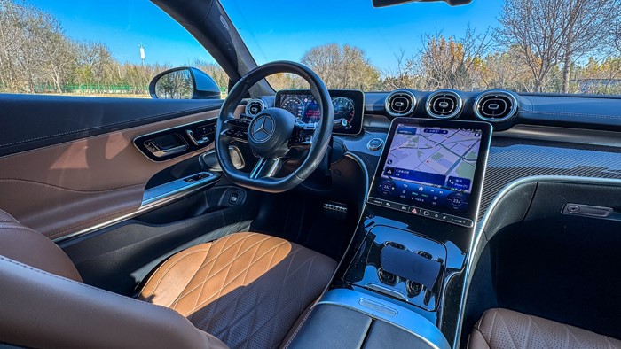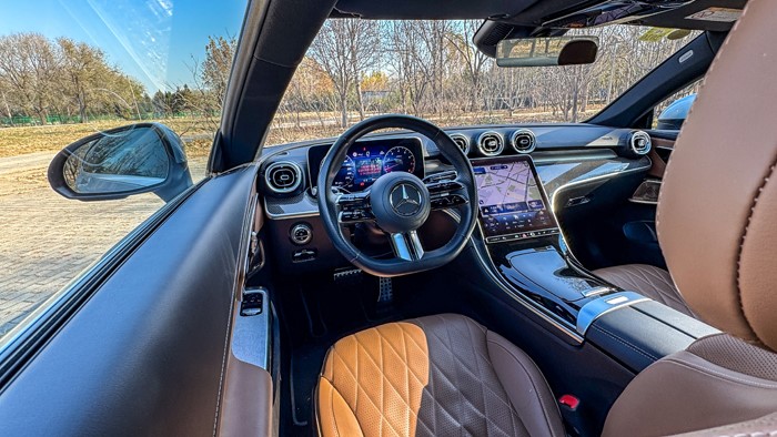 拉开车门,除了那跑车范十足的无框车窗,更引人注目的是奔驰车型最为突出的豪华优势:这台棕黑配色的内饰配色营造了清新高雅的氛围。不得不承认奔驰作为一个百年豪华品牌,在营造车厢氛围方面的造诣几乎无车能敌。