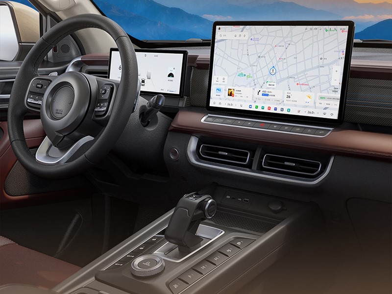 外观方面,新车延续现款造型,大尺寸格栅搭配越野风格前包围,并提供涉水喉、熏黑轮毂、T-MAX绞盘等。除此还可选装K-MAN氮气减震、百路驰轮胎等。