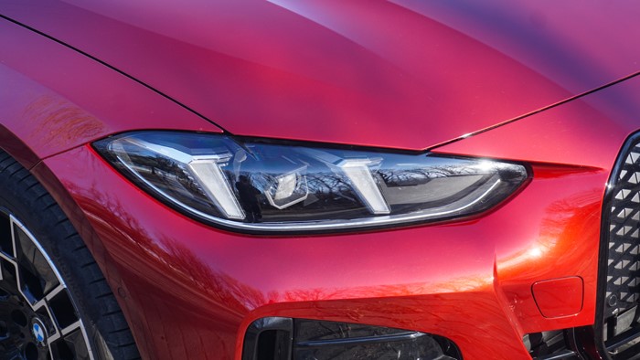 宝马i4的外观设计是很有视觉冲击力的,整个车身延续了宝马一贯的简洁、硬朗的线条感,并加入了充满未来感的元素。特别是车头部分完美地融入了LED灯光和封闭式双肾型“进气格栅”的设计,火焰红色油漆配合亮黑色套件令人过目难忘。