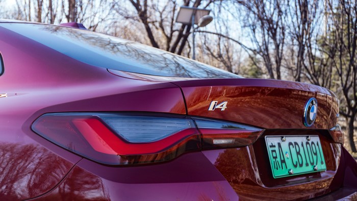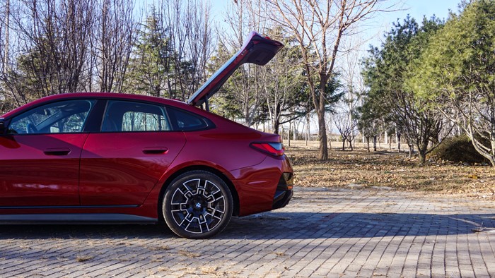 i4的前后车门均为无框玻璃门设计,这也提升了它的美感,当你拉开车门时,光影与通透,这种高级的美感和情绪价值都拉满了。掀背的设计也表明原装进口的特殊身份。