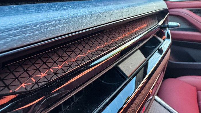 进入车内,氛围灯迷幻色彩浓郁,按下启动按钮,随之而来的是一段模拟的类似电流接入的声音,非常像科幻片里那种飞船已就位,待命出发的既视感。
