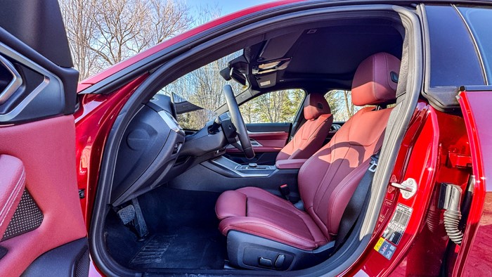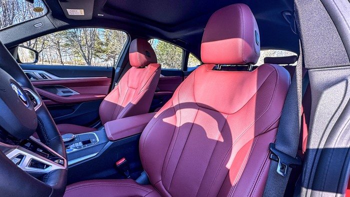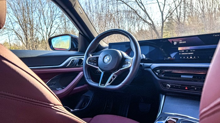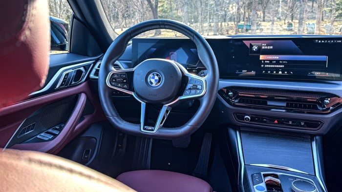 宝马i4的驾驶座椅采用人体工学设计,搭配上新款的M运动方向盘,让整个驾驶体验非常顺畅自如。