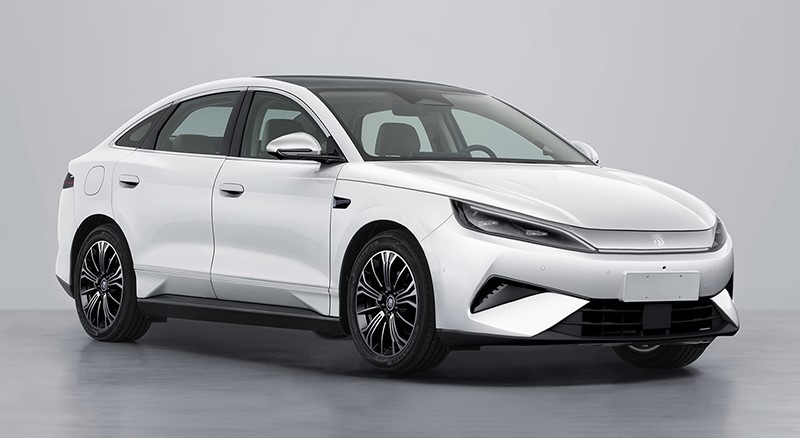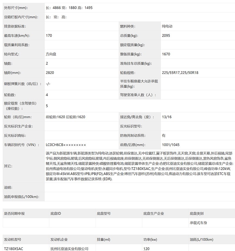 车侧和秦L EV相似,都是半隐藏式门把手,在侧裙还有两个尖角设计。车尾搭配贯穿式尾灯,加入波浪纹元素。车身尺寸方面,新车长宽高分别为4866*1880*1495mm,轴距为2820mm。车长比秦L EV还更长。