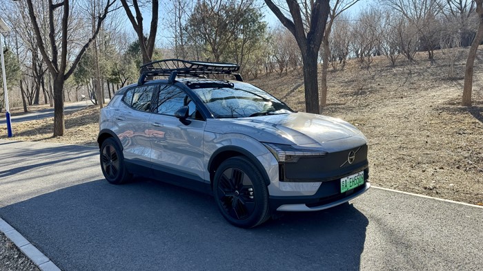 车身侧面呈现出优雅的弧线和凌厉的棱角,展现出车辆的动态美感。车顶采用向后下压的设计,提升了车辆的空气动力学性能,车顶行李架是最出彩的搭配。车辆三围尺寸:4233*1850*1573mm,轴距2650mm,车身高度比普通版EX30多了19mm。