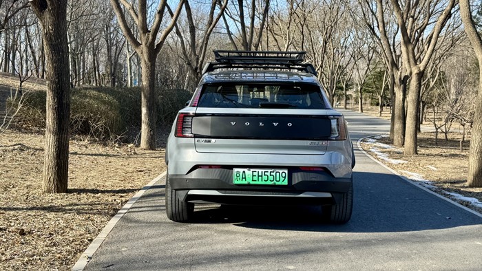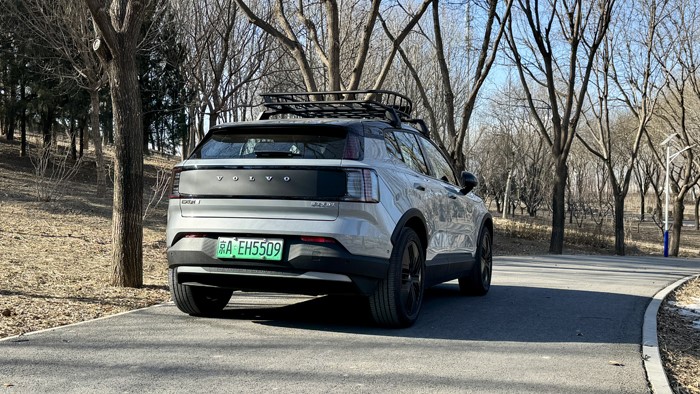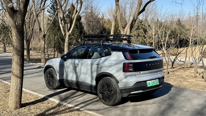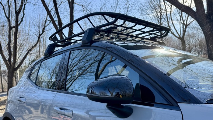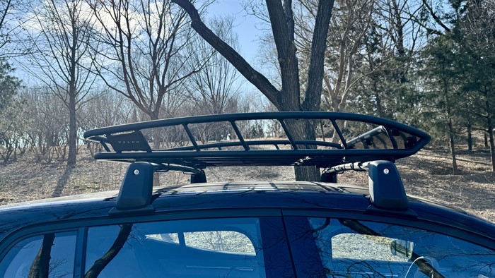 沃尔EX30 CC配备设计独特的轮毂,车辆选配了235/50 R19的大尺寸轮胎,造型时尚,进一步提升了车辆的视觉冲击力。轮毂设计突出个性,为整车外观增添了一份独特的户外感。车顶行李架应该是来自瑞典拓乐的代工,型号为拓乐859,最大设计载重量为68公斤。