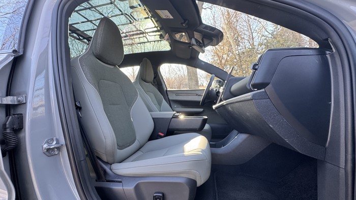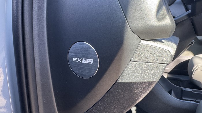 EX30 CC的松绿色内饰设计融合了现代科技与北欧的简约风格,营造出一个既实用又富有品位的驾驶环境。内饰整体布局简洁而富有逻辑,仪表盘和中控台采用流线型设计,有着家居的空间感。中控区域配备一块12.3英寸大尺寸的触控屏,集成了多种功能,包括导航、娱乐和车辆设置,操作直观便捷。