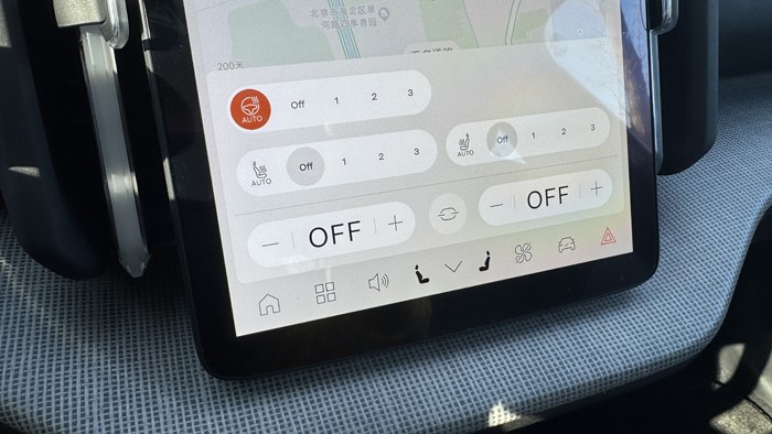 车辆的座椅设计符合人体工程学,提供了良好的支撑感和舒适性,配备三档加热功能,确保在不同气候条件下的舒适体验。主副驾驶的电动调节外观为集成式设计,通过按动中间按键切换不同项目的座椅调节。空调系统在液晶触控屏上操作并无难度很好上手。