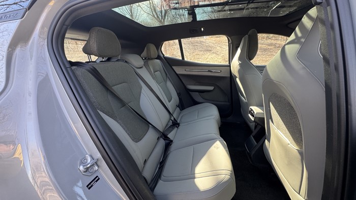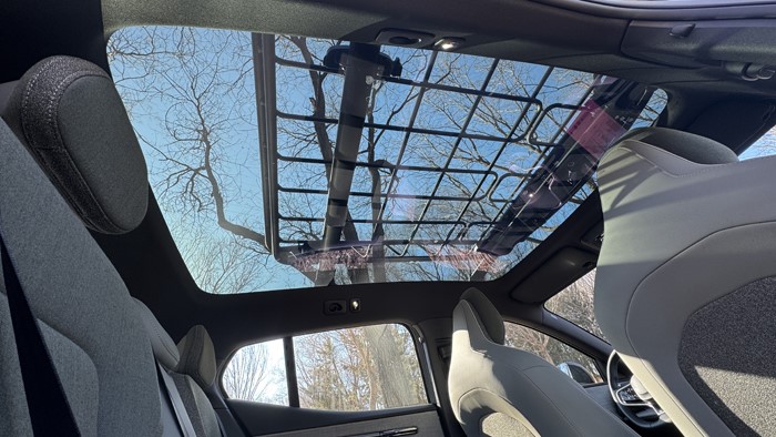 后排空间中规中矩,可胜任日常家庭出行。宽大的玻璃车顶也让视野更加开阔,由于透光率仅为3.9%,因此无需使用遮阳帘,阳光也能温和地透入车内。