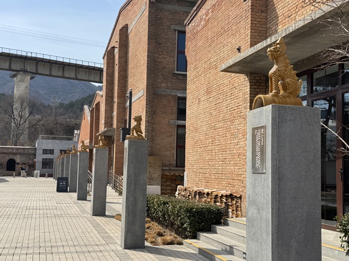 金隅琉璃文化产业园就是北京市琉璃制品厂,始于1263年,历经元明清三个朝代,为皇家琉璃厂,一直为故宫、天坛、颐和园等皇家建筑提供琉璃制品。一进门的这条琉璃大道摆着大殿屋脊上最常见的各种神兽。