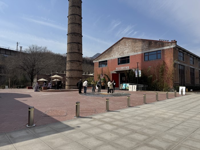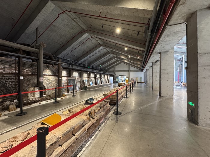 这是咖啡厅边上的老车间,可以看到铁轨、老窑炉。现在可以供游客感受过去烧琉璃的过程。