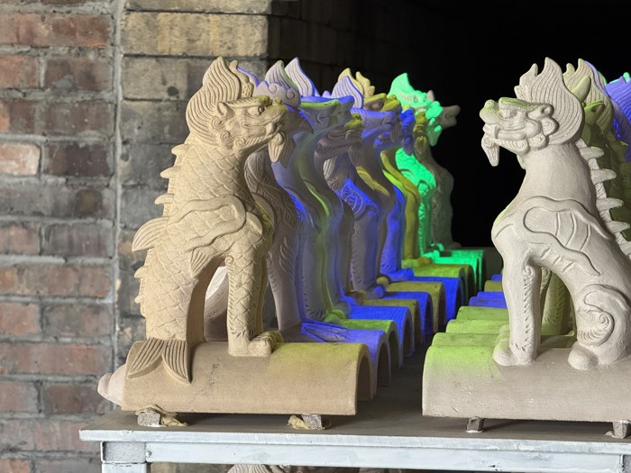 未烧制的琉璃胚子可以看出是屋脊上的神兽,虽然没有釉色,但依旧可以看出做工十分精美。