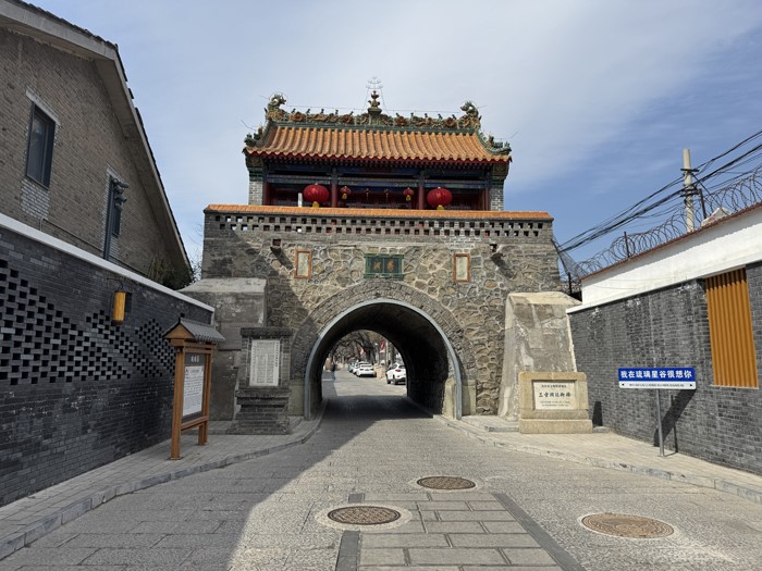 逛完琉璃文创园,走出来就是琉璃渠文化村落,进村的过街楼也是文物建筑,上面的琉璃屋脊十分精美。