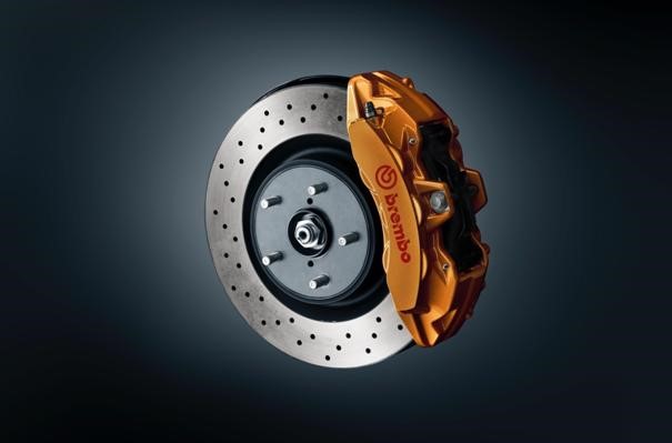 19英寸专属铝合金运动轮毂,搭载Brembo高性能制动卡钳,采用前六活塞、后两活塞的组合,提供强劲而稳定的制动表现,让澎湃动力收放更从容、掌控更自信。